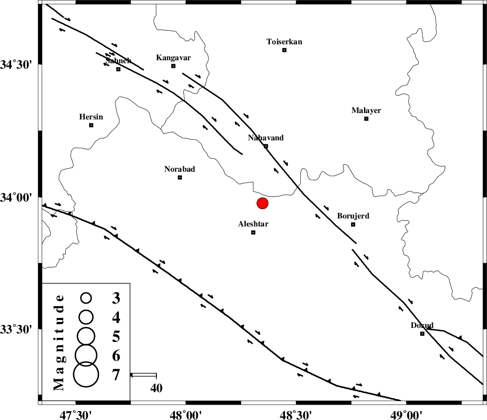 NAHAVAND_F (Length: 102 km) , Distance to epicenter: 18 km | |
