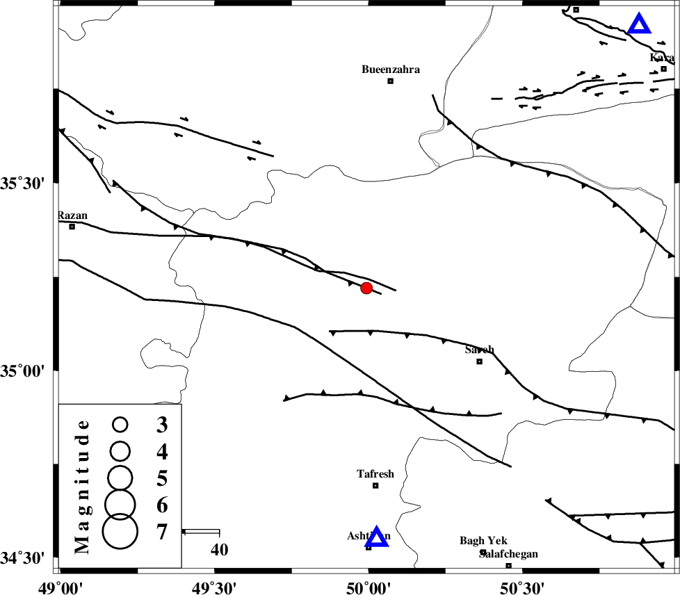 KUSHK_E_NOSRAT_F (Length: 230 km) , Distance to epicenter: 4 km | |