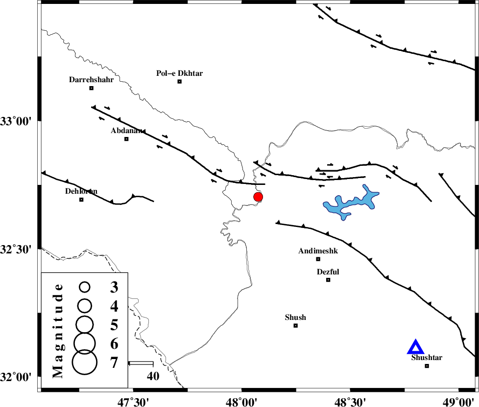 DEZFUL_EMBAYMENT (Length: 228 km) , Distance to epicenter: 14 km | |