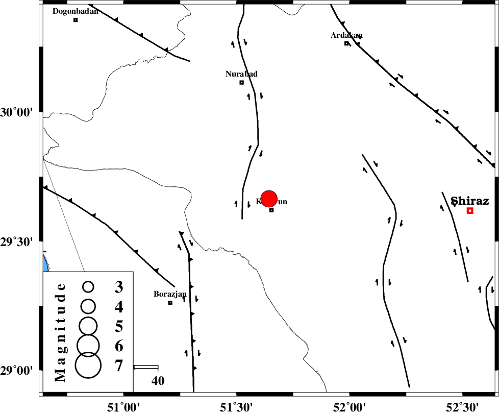 KAZERUN_F (Length: 96 km) , Distance to epicenter: 12 km | |