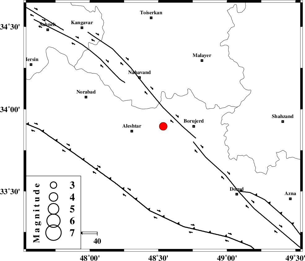 NAHAVAND_F (Length: 102 km) , Distance to epicenter: 13 km | |