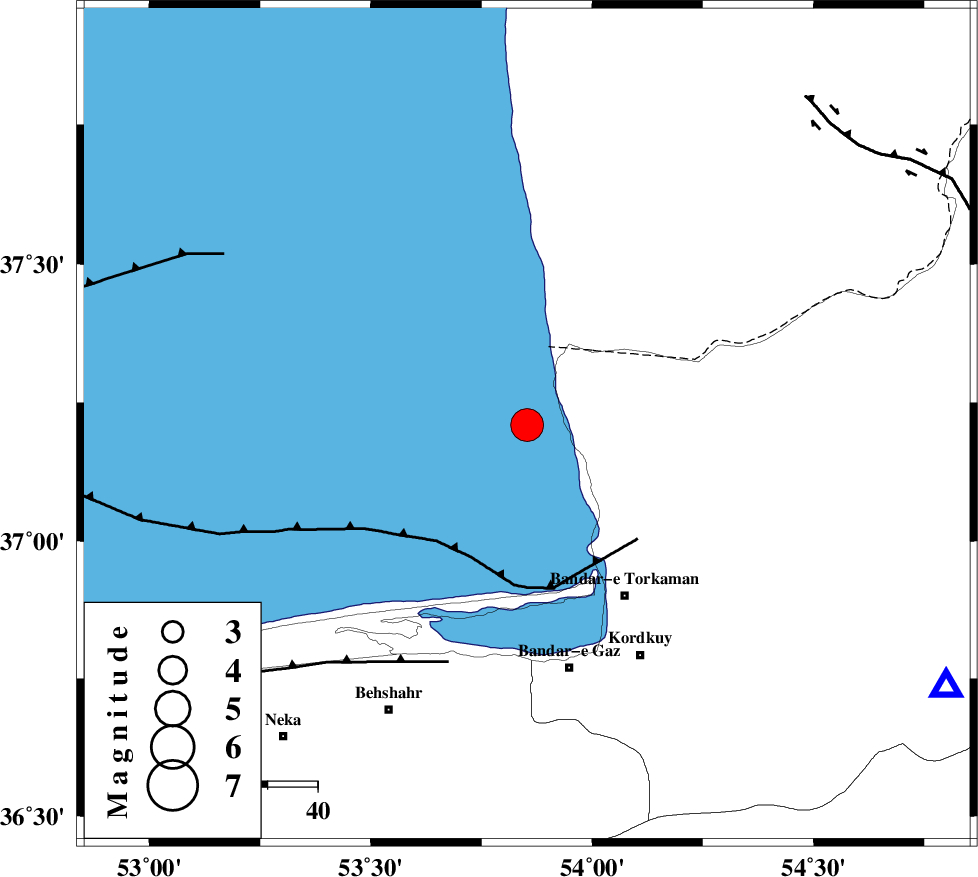 KHAZAR_F (Length: 523 km) , Distance to epicenter: 53 km | |