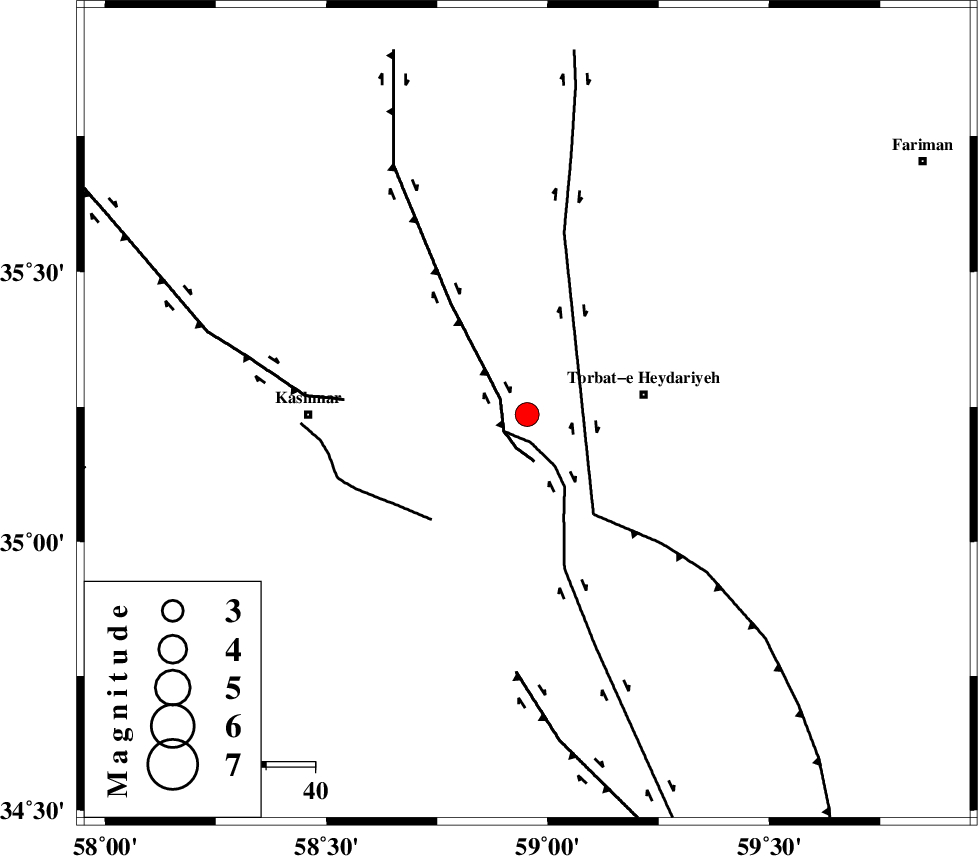 KASHMAR_F (Length: 91 km) , Distance to epicenter: 4 km | |