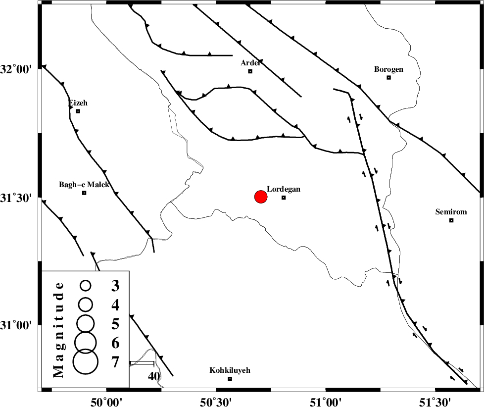 | SABZKUH_F (Length: 67 km) , Distance to epicenter: 25 km | |