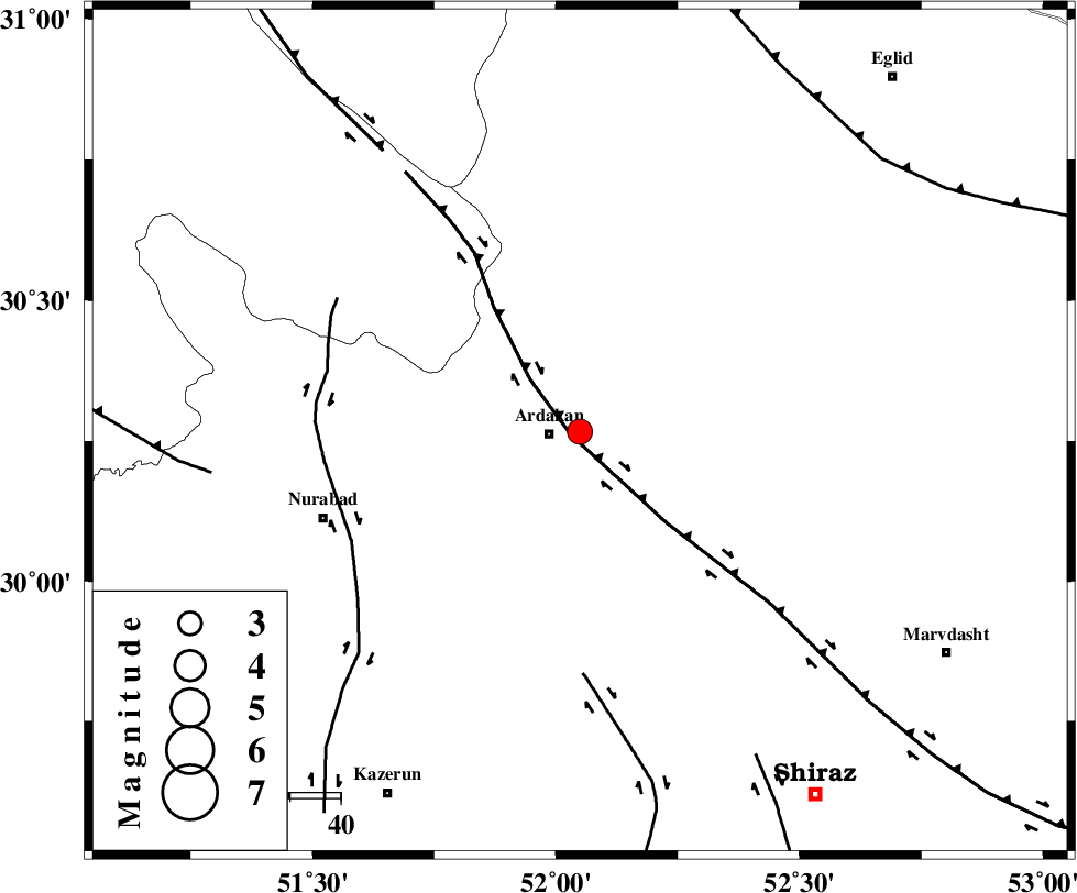 | KAZERUN_F (Length: 96 km) , Distance to epicenter: 50 km | |