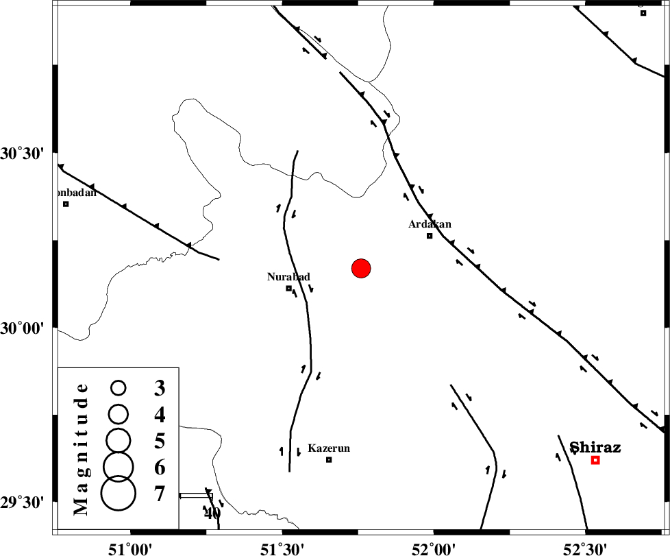 | KAZERUN_F (Length: 96 km) , Distance to epicenter: 20 km | |
