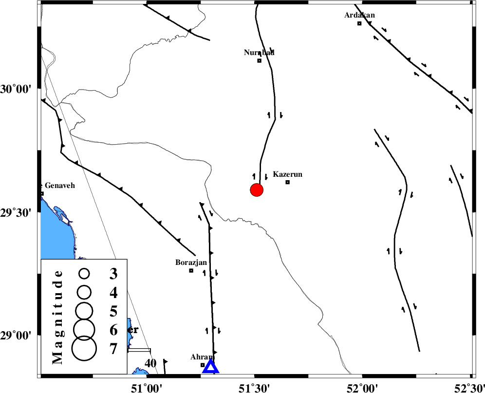 | KAZERUN_F (Length: 96 km) , Distance to epicenter: 1 km | |