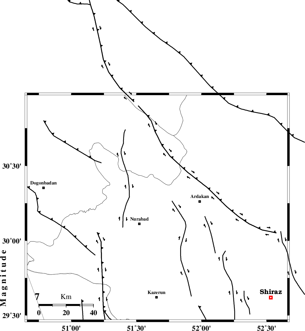 | KAZERUN_F (Length: 96 km) , Distance to epicenter: 13 km | |