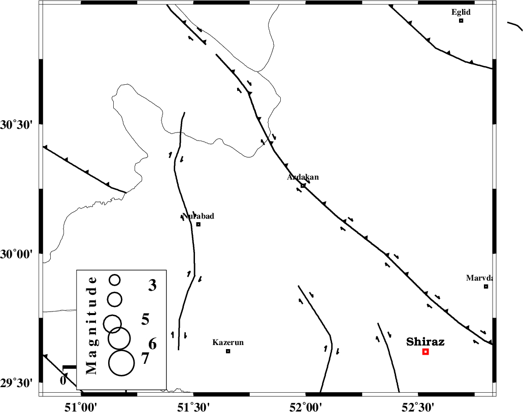 | KAZERUN_F (Length: 96 km) , Distance to epicenter: 29 km | |