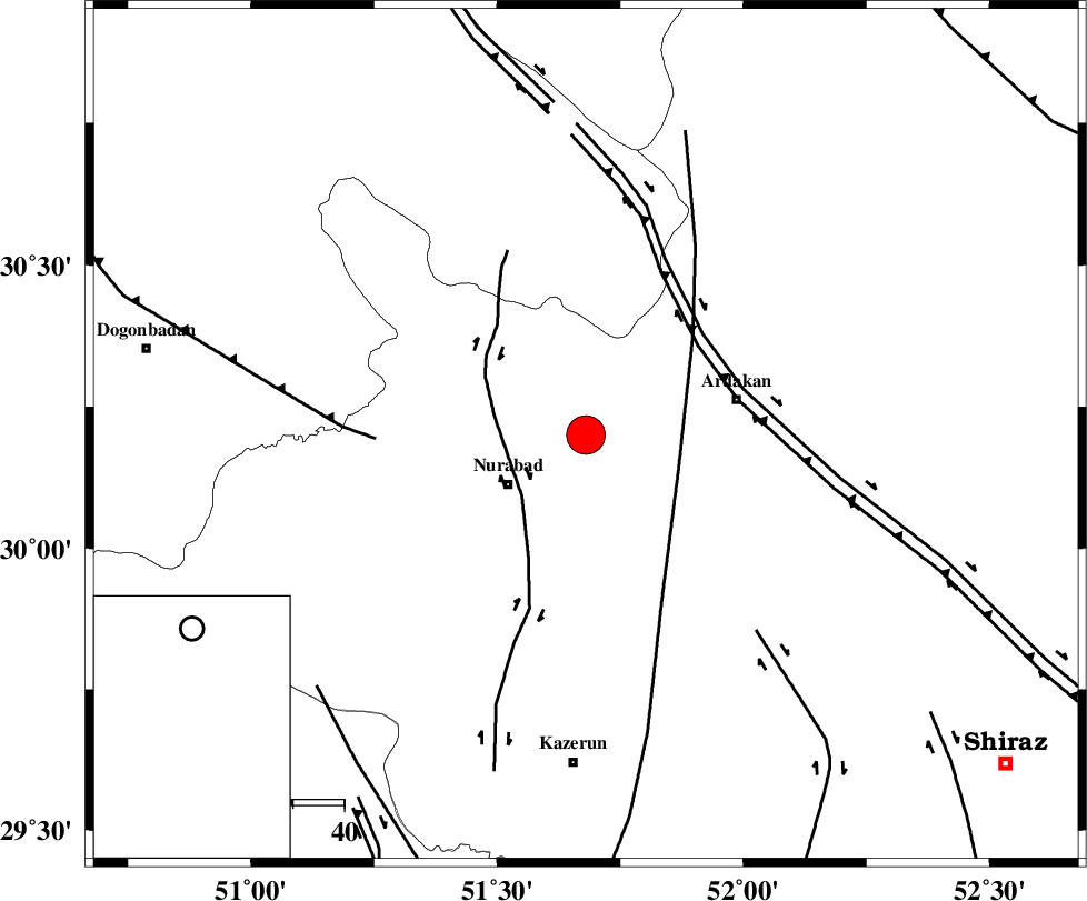 | KAZERUN_F (Length: 96 km) , Distance to epicenter: 15 km | |