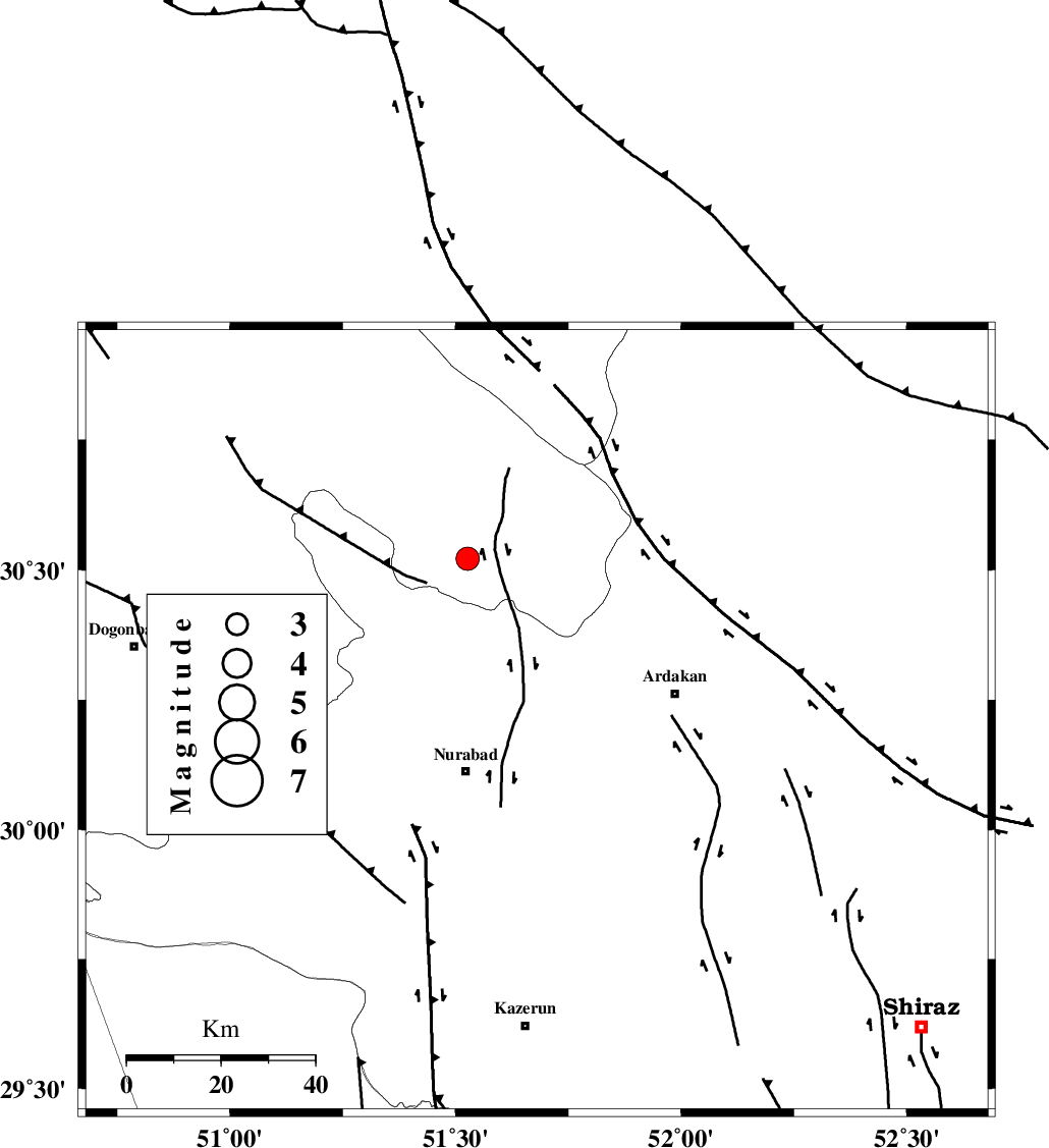 | KAZERUN_F (Length: 96 km) , Distance to epicenter: 15 km | |