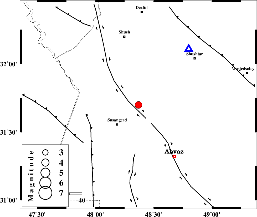 AHVAZ_F (Length: 99 km) , Distance to epicenter: 14 km