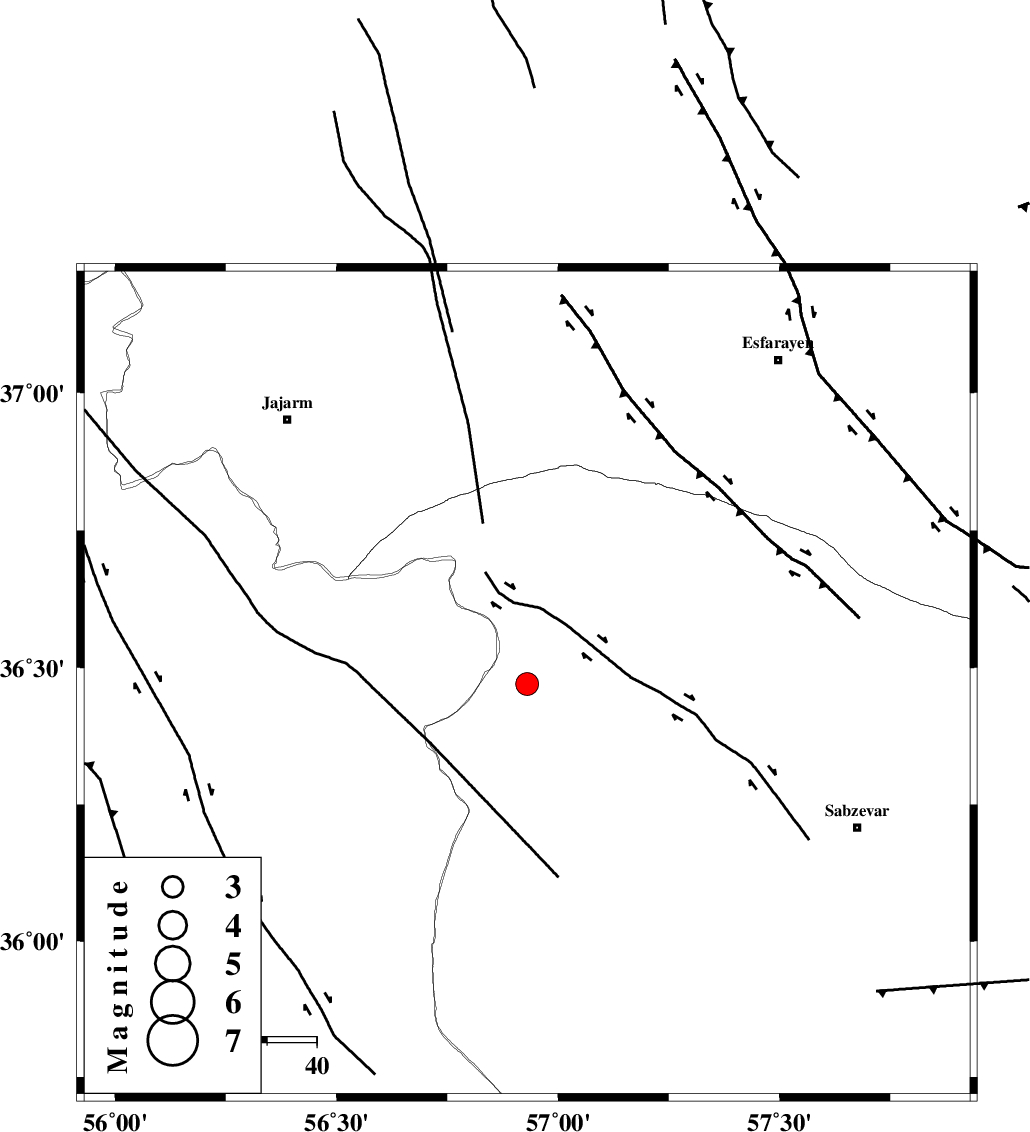| SABZEVAR_F (Length: 81 km) , Distance to epicenter: 6 km | |
