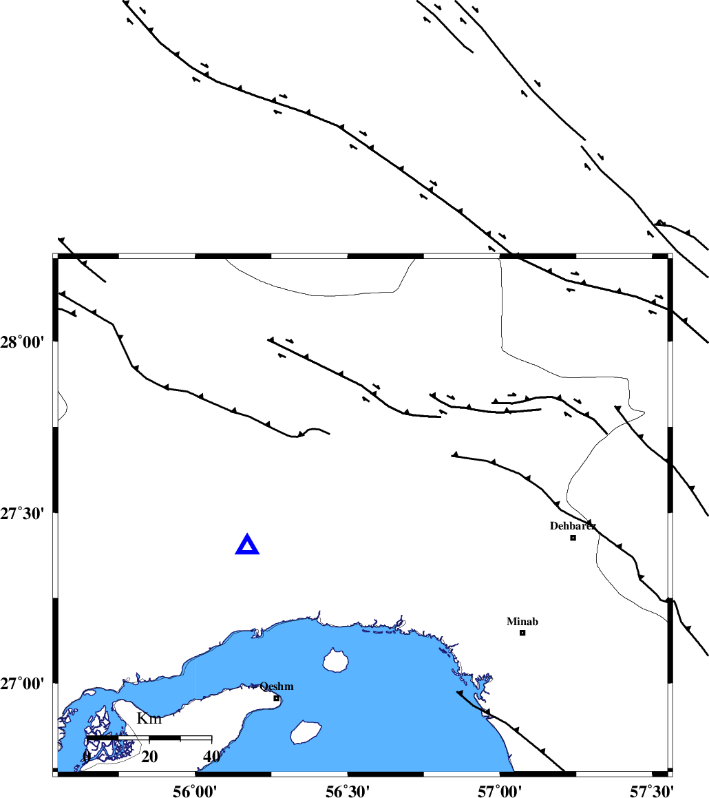 | ZENDAN_MINAB_F_Z1 (Length: 183 km) , Distance to epicenter: 45 km | |