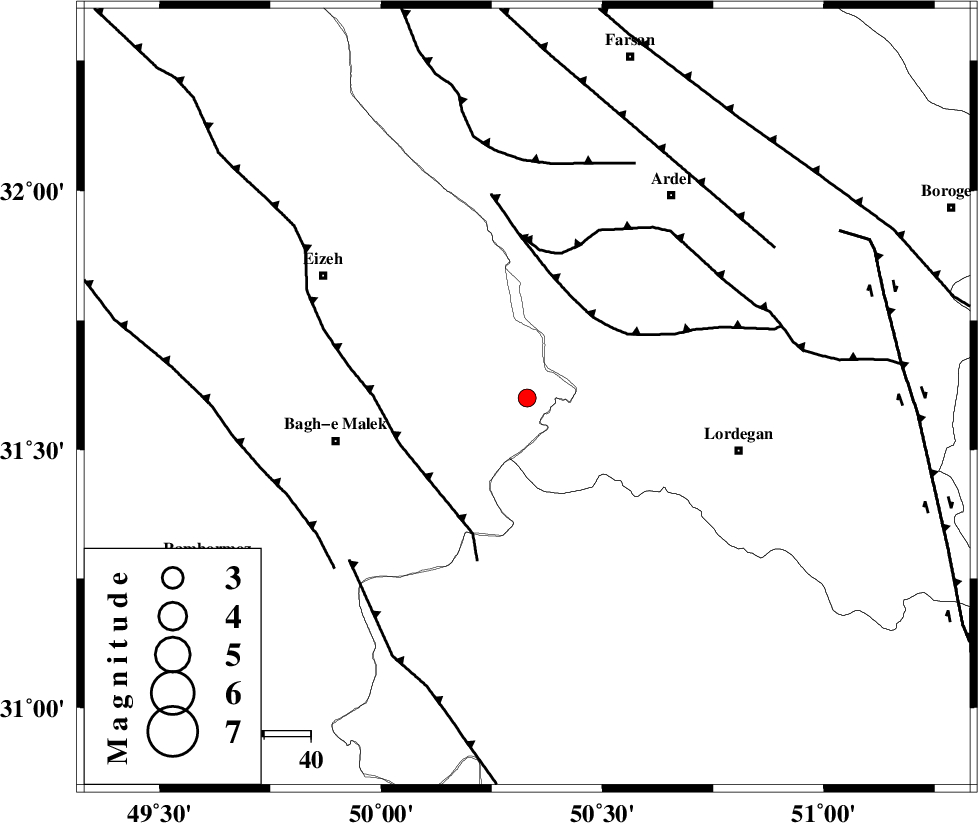 | SABZKUH_F (Length: 67 km) , Distance to epicenter: 22 km | |