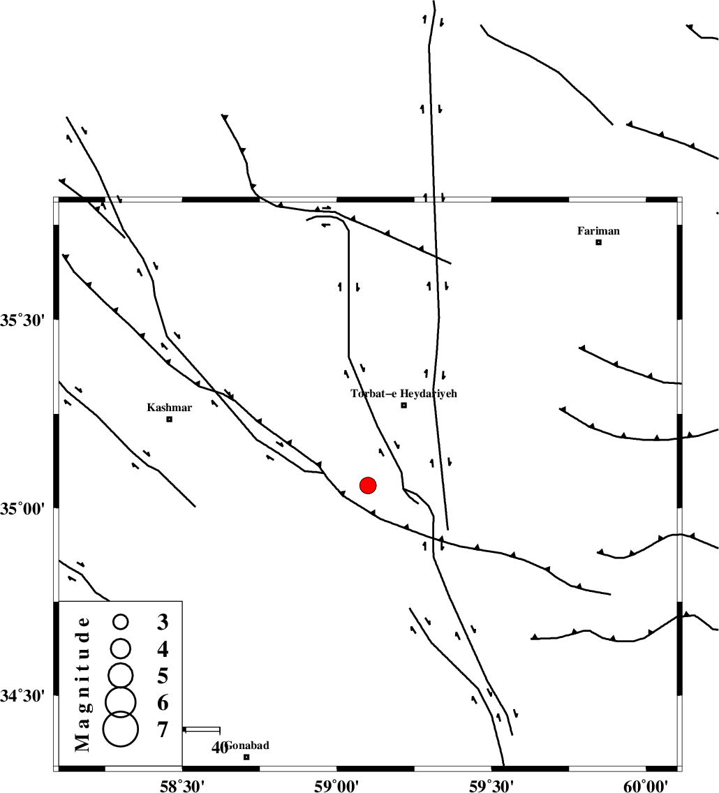 | KASHMAR_F (Length: 91 km) , Distance to epicenter: 14 km | |