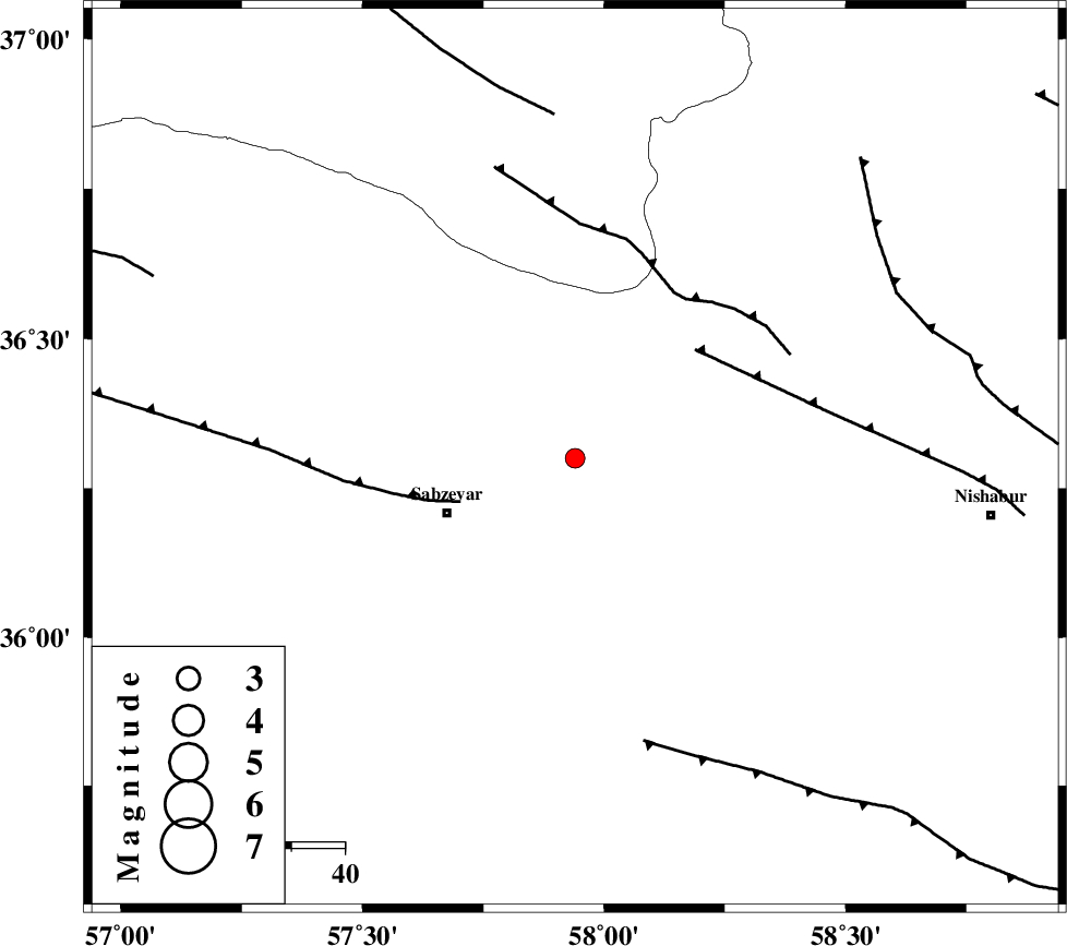 NAYSHABUR_F (Length: 74 km) , Distance to epicenter: 30 km