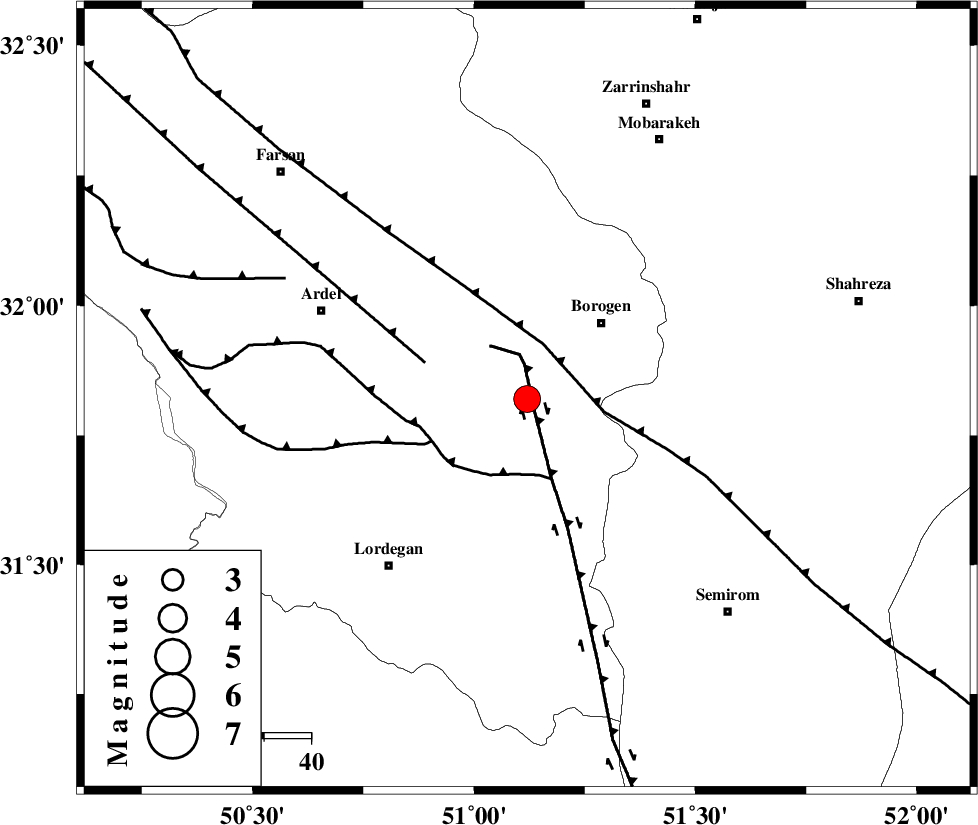 | MAIN_ZAGROS_R_F (Length: 1106 km) , Distance to epicenter: 12 km | |