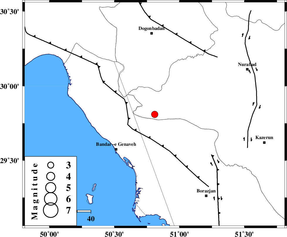 | 39 km North East of Bandar-e genaveh, Bushehr Province | |