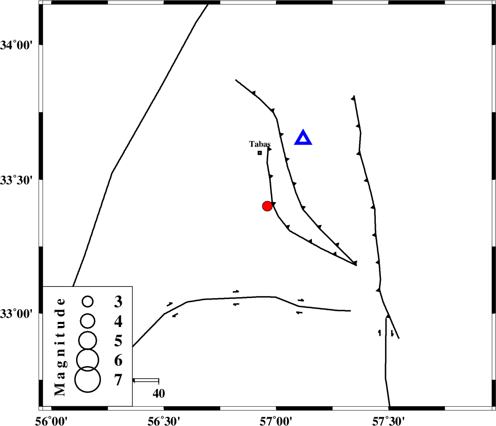 | TABAS_F2 (Length: 67 km) , Distance to epicenter: 2 km | |