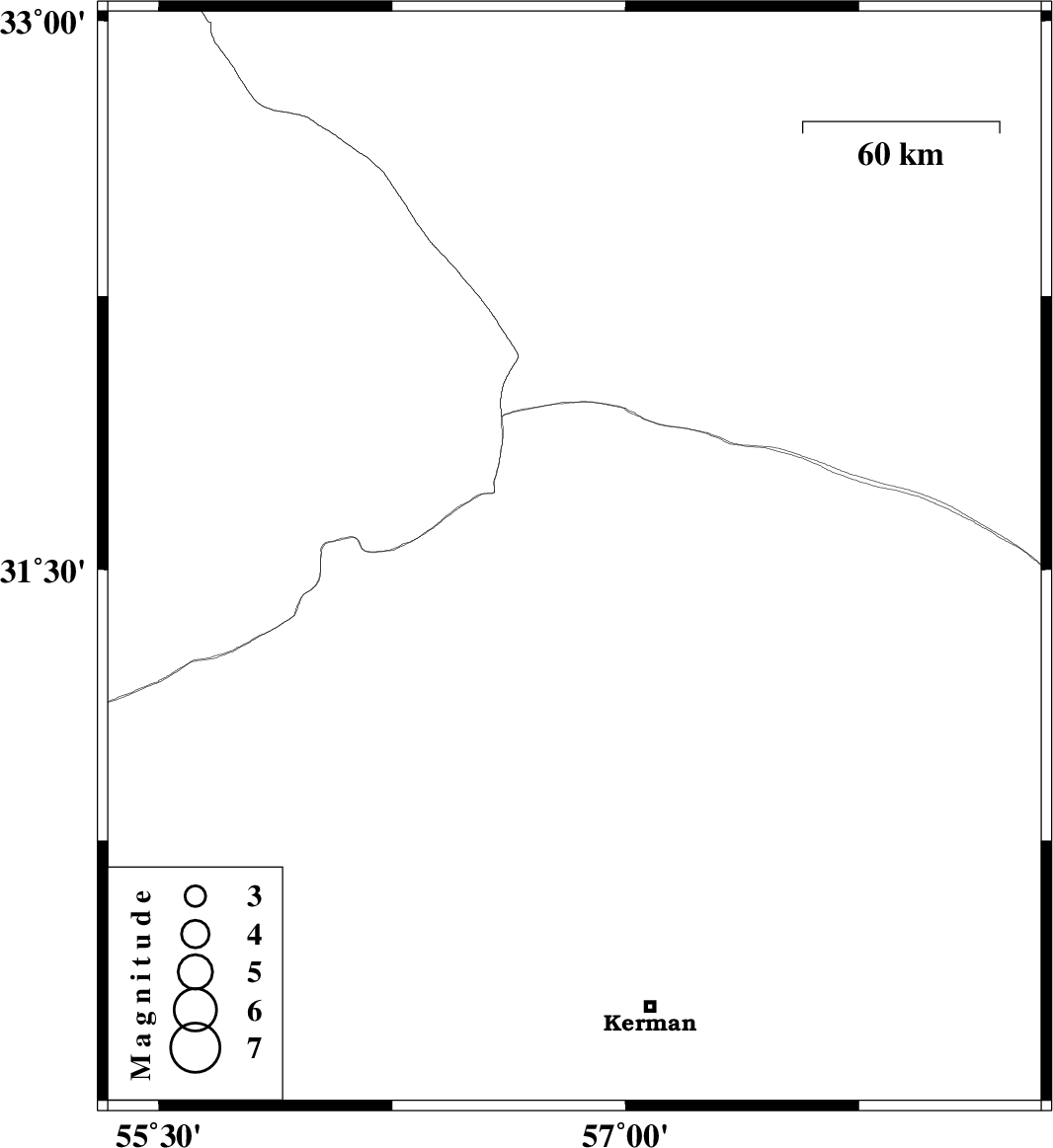 | 2015/07/12 | 14:39:46.8 | 19:09:46.8 | 31.526 | 56.836 | 14 | ML2.7 | Kerman Province, 29 km North of Ravar |