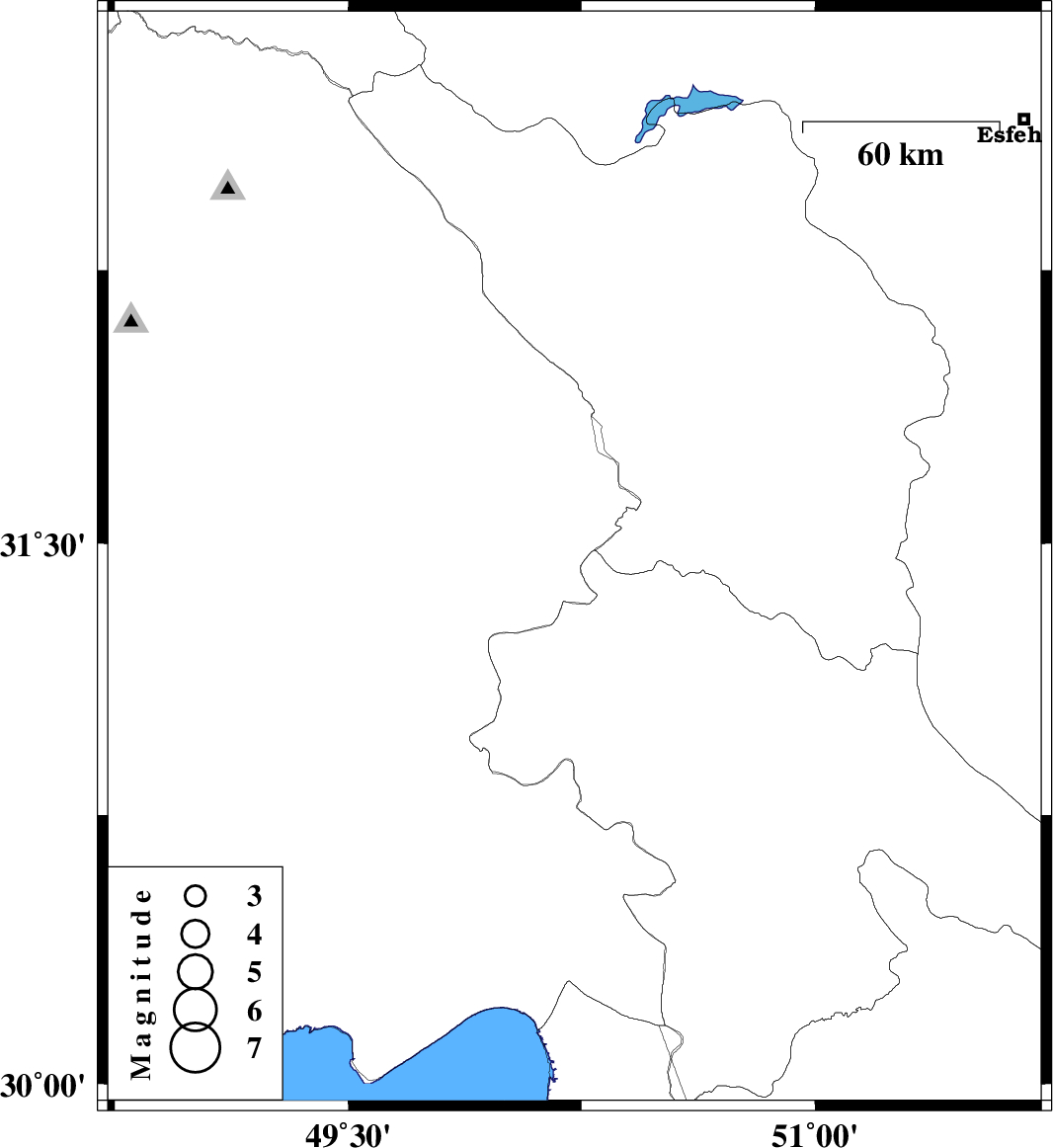 | 2015/07/12 | 17:13:29.8 | 21:43:29.8 | 31.455 | 50.227 | 18 | ML3.3 | Khoozestan Province, 32 km -East of Bagh Malek |