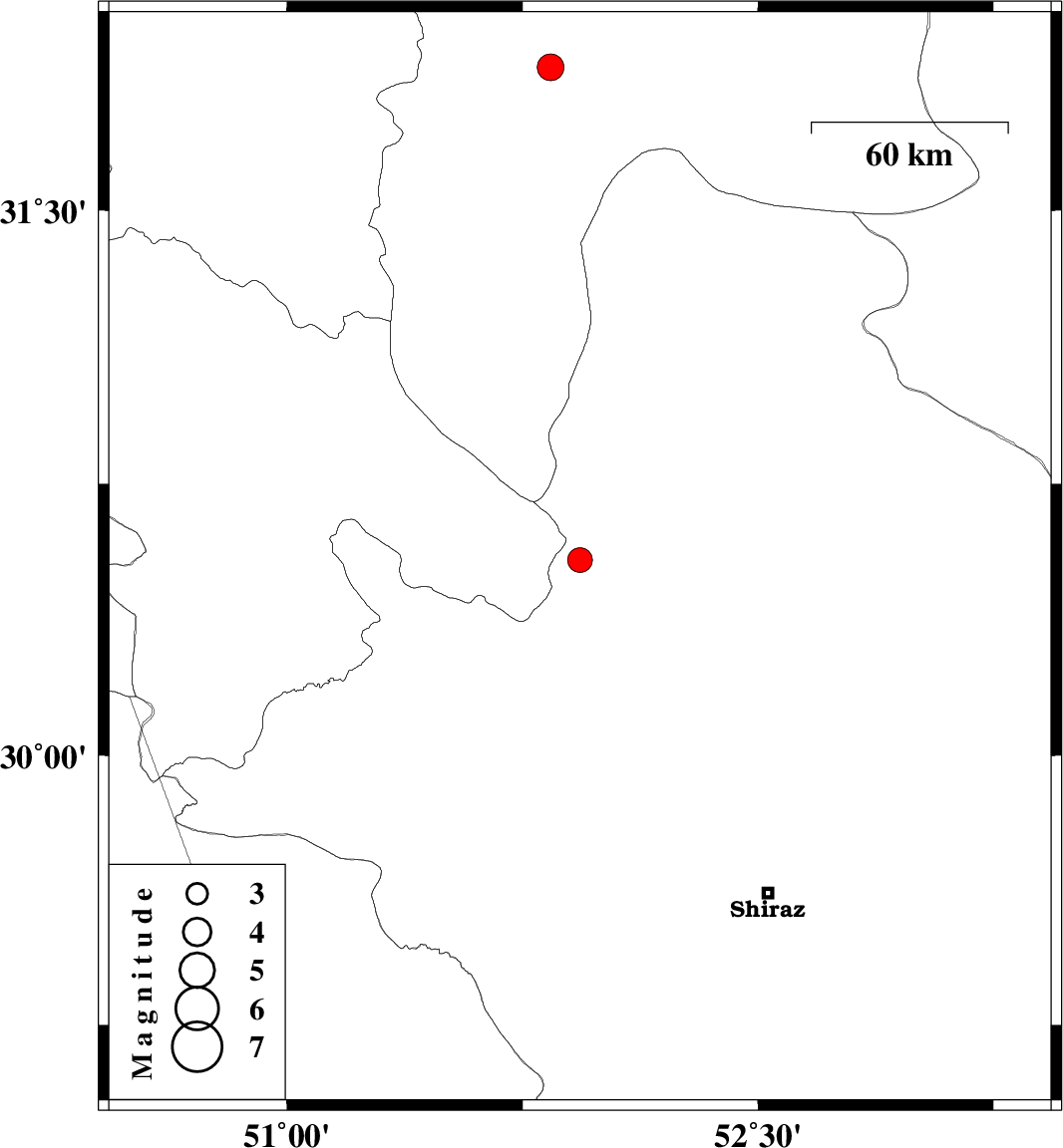 | 2015/06/20 | 12:38:02.4 | 17:08:02.4 | 31.89 | 51.84 | 14 | ML3.8 | Esfahan Province, 14 km South of Shahreza |