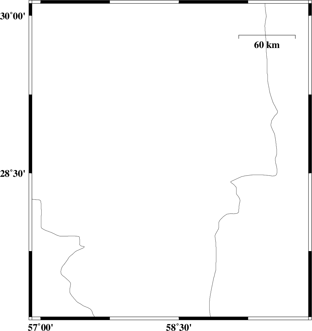 | 2015/07/20 | 14:54:15.1 | 19:24:15.1 | 28.614 | 58.406 | 18 | ML2.9 | Kerman Province, 55 km South of Bam | ||