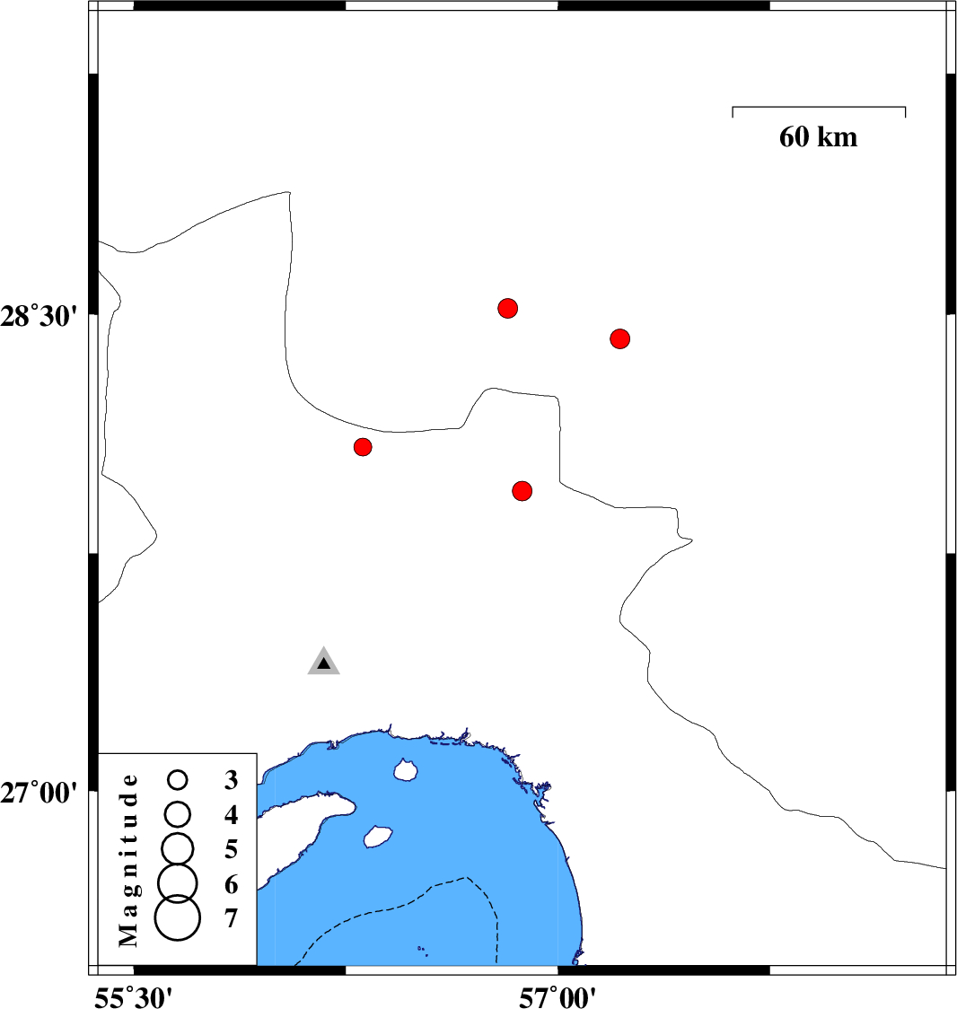 | 2015/07/17 | 15:40:39.4 | 20:10:39.4 | 28.085 | 56.31 | 15 | ML2.8 | Hormozgan Province, 47 km South-East of Hajiabad |