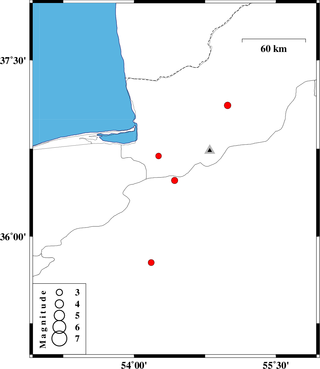 | 2015/07/20 | 17:38:25.7 | 22:08:25.7 | 36.689 | 54.259 | 18 | ML2.8 | Golestan Province, 18 km South-East of Kordkuy | ||