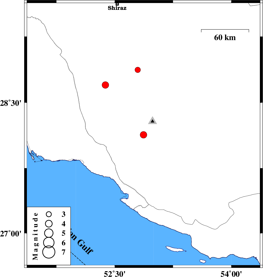 | 2015/06/26 | 05:16:04.2 | 09:46:04.2 | 28.7 | 52.38 | 6 | ML3.9 | Fars Province, 25 km South-West of Firuz Abad |