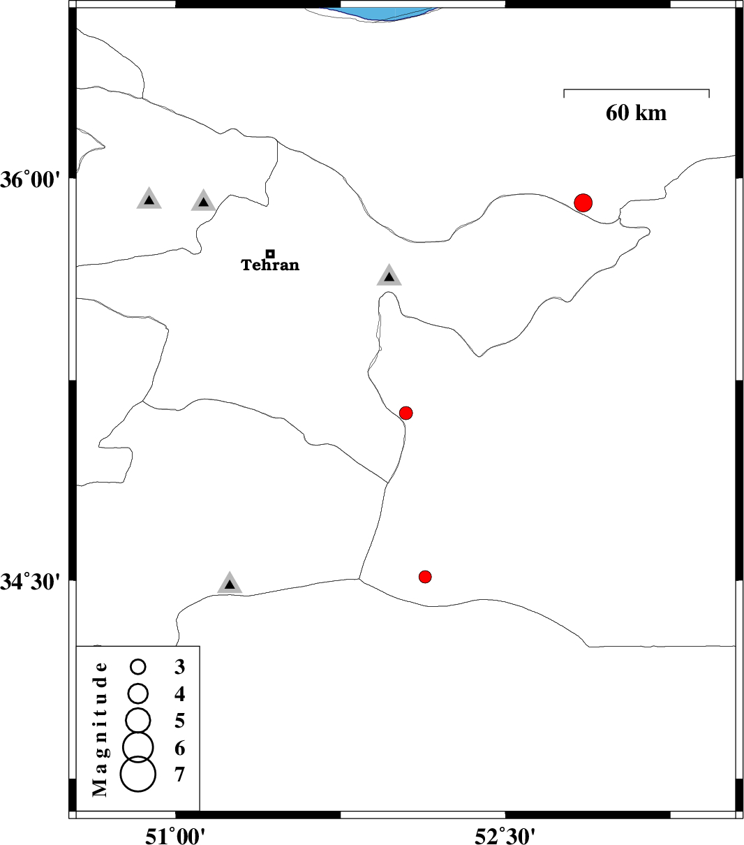 | 2015/07/26 | 09:37:06.8 | 14:07:06.8 | 35.909 | 52.854 | 15 | ML3.6 | Mazandaran Province, 20 km North of Firuzkuh |