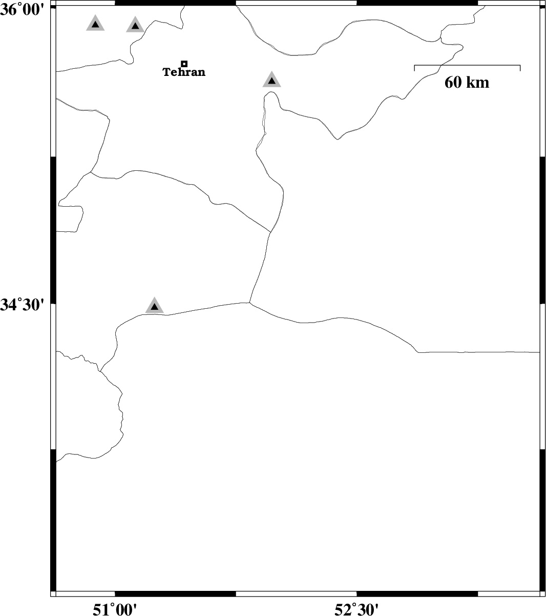 | 2015/07/30 | 06:19:25.2 | 10:49:25.2 | 35.127 | 52.047 | 14 | ML2.7 | Semnan Province, 28 km -West of Garmsar | ||