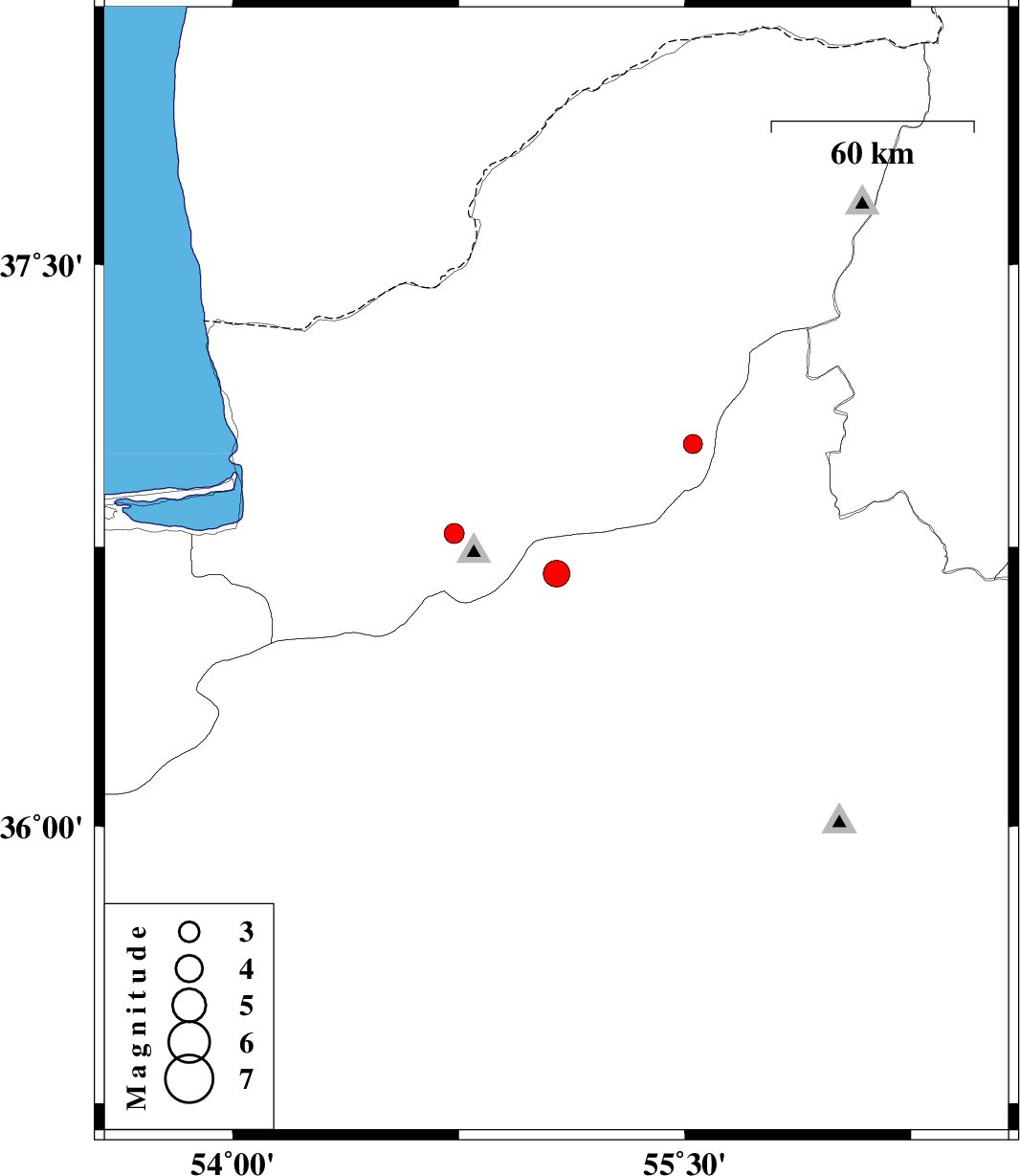 | 2015/08/06 | 21:17:59.3 | 01:47:59.3 | 37.024 | 55.526 | 26 | ML2.8 | Golestan Province, 26 km South-East of Minodasht |