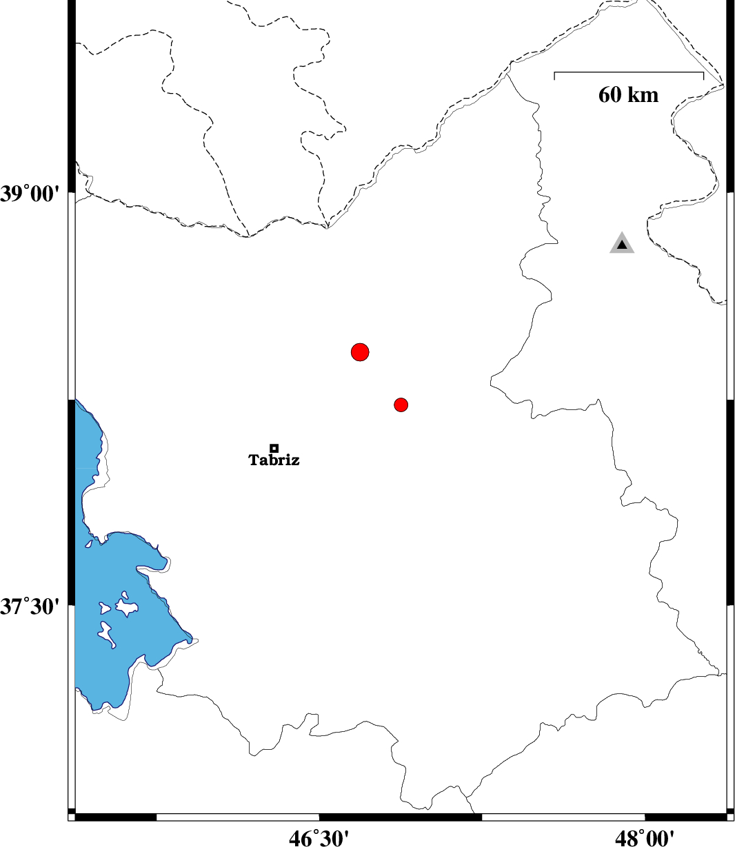 | 2015/08/06 | 20:30:07.9 | 01:00:07.9 | 38.423 | 46.688 | 14 | ML3.7 | Azarbaijan Sharghi Province, 35 km -West of Ahar |