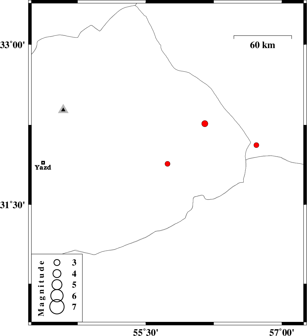 | 2015/08/13 | 08:09:06.5 | 12:39:06.5 | 31.884 | 55.74 | 14 | ML2.5 | Yazd Province, 45 km North-East of Bafq | ||