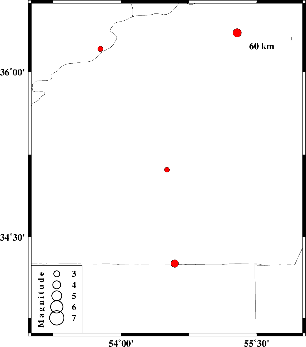 | 2015/08/14 | 23:33:17.7 | 04:03:17.7 | 34.255 | 54.594 | 14 | ML3.8 | Semnan Province, 214 km South-East of Damghan |