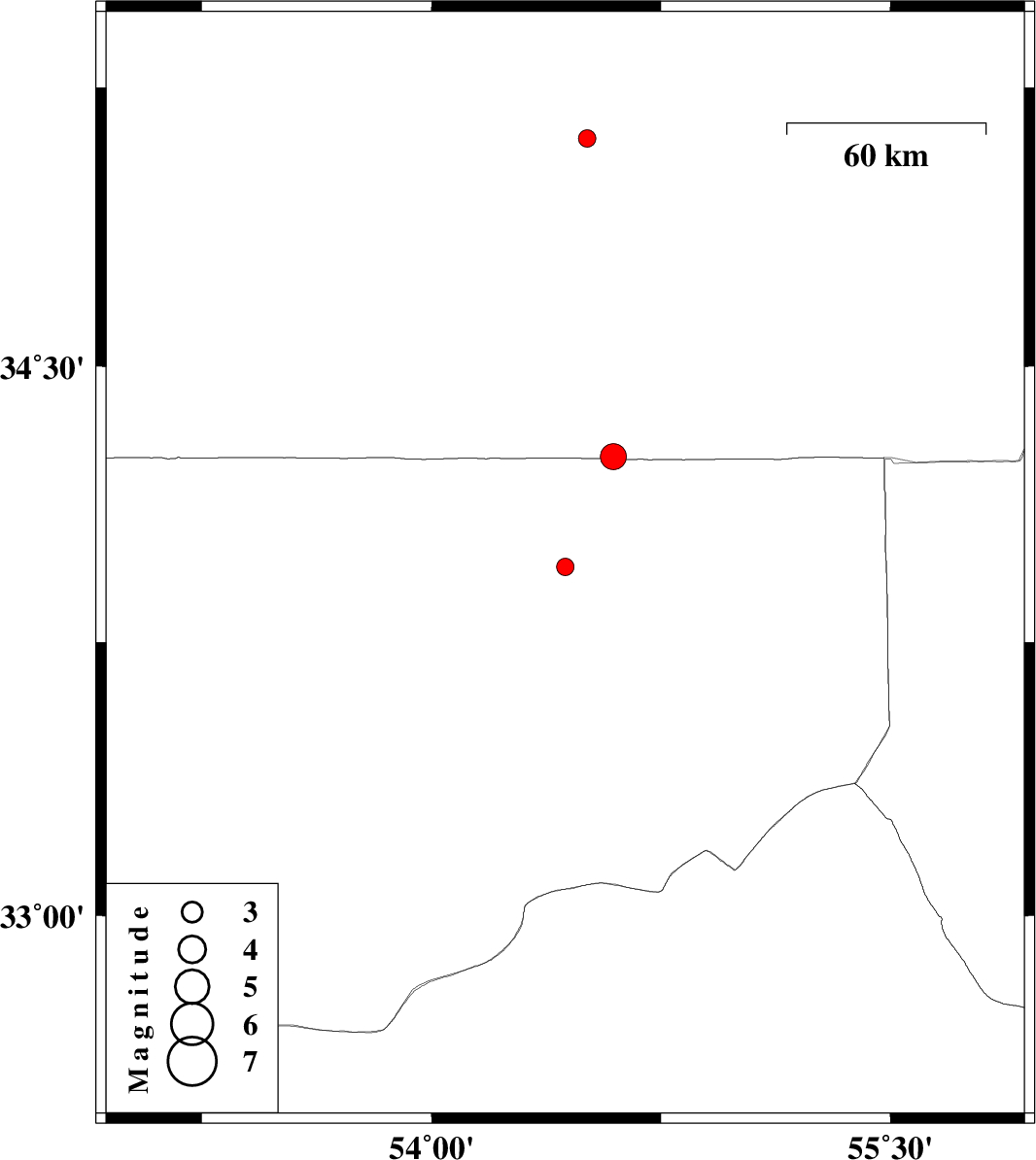 | 2015/08/14 | 23:33:17.7 | 04:03:17.7 | 34.255 | 54.594 | 14 | ML3.8 | Semnan Province, 214 km South-East of Damghan |