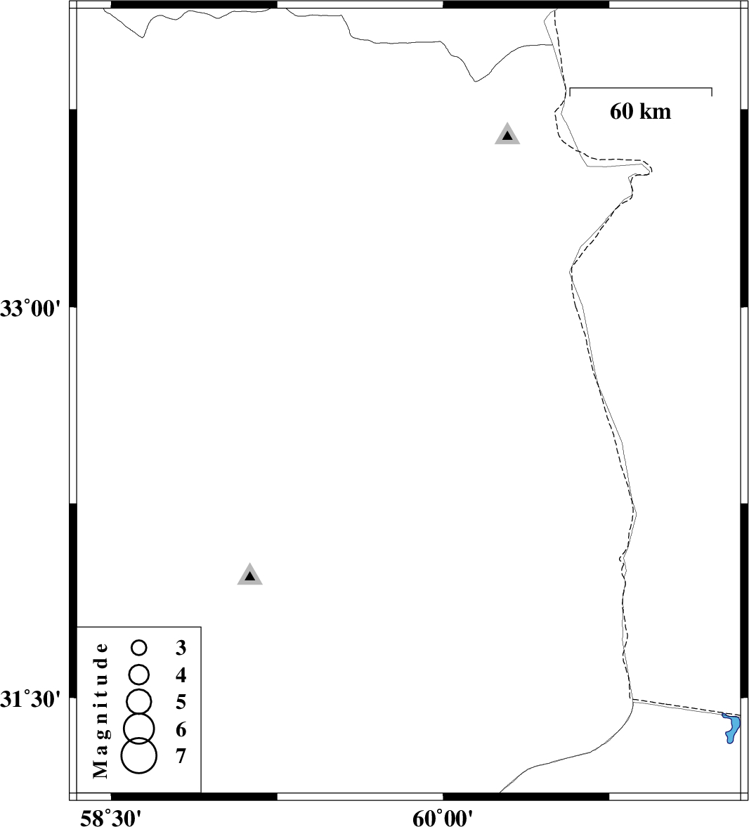 | 2015/08/25 | 23:18:27.6 | 03:48:27.6 | 32.631 | 59.844 | 17 | ML2.5 | Khorasan(south) Province, 5 km of Sarbisheh |