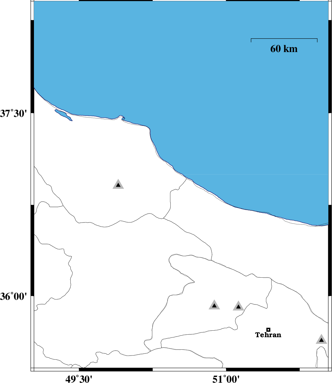 | 2015/08/28 | 22:20:58.3 | 02:50:58.3 | 36.902 | 50.541 | 17 | ML3.5 | Mazandaran Province, 9 km -West of Ramsar |
