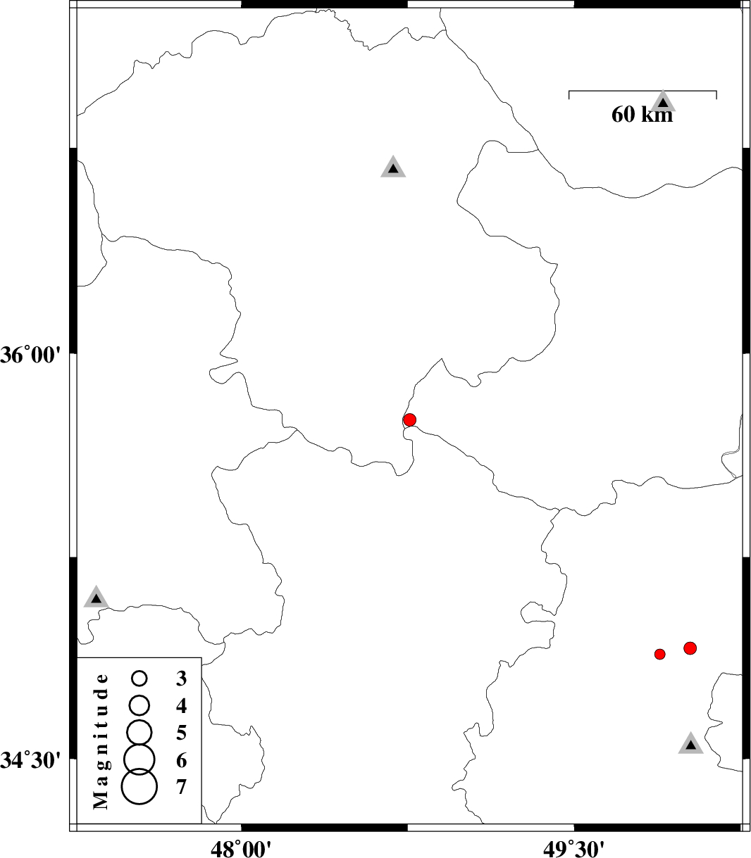 | 2015/08/27 | 04:59:22.3 | 09:29:22.3 | 34.912 | 50.023 | 15 | ML2.5 | Markazi Province, 24 km North of Tafresh | ||