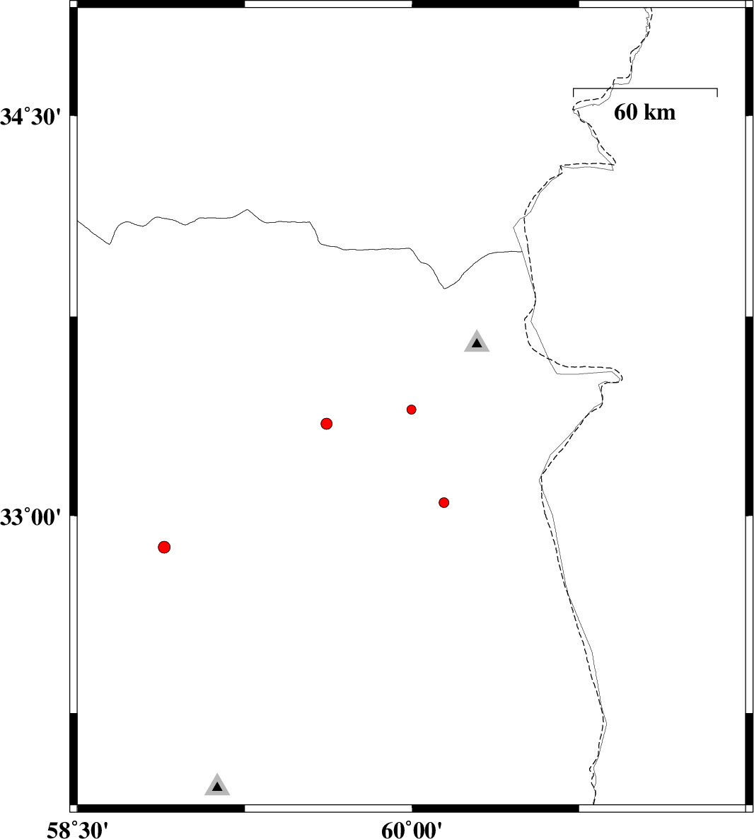 | 2015/09/05 | 00:35:17.2 | 05:05:17.2 | 32.88 | 58.888 | 16 | ML2.4 | Khorasan(south) Province, 32 km -West of Birjand |