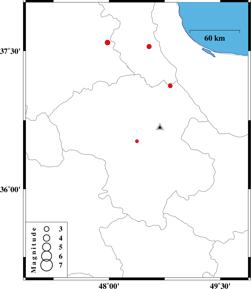 | 2015/09/06 | 04:26:47.6 | 08:56:47.6 | 37.59 | 47.979 | 14 | ML3.1 | Azarbaijan Sharghi Province, 29 km North-East of Mianeh |