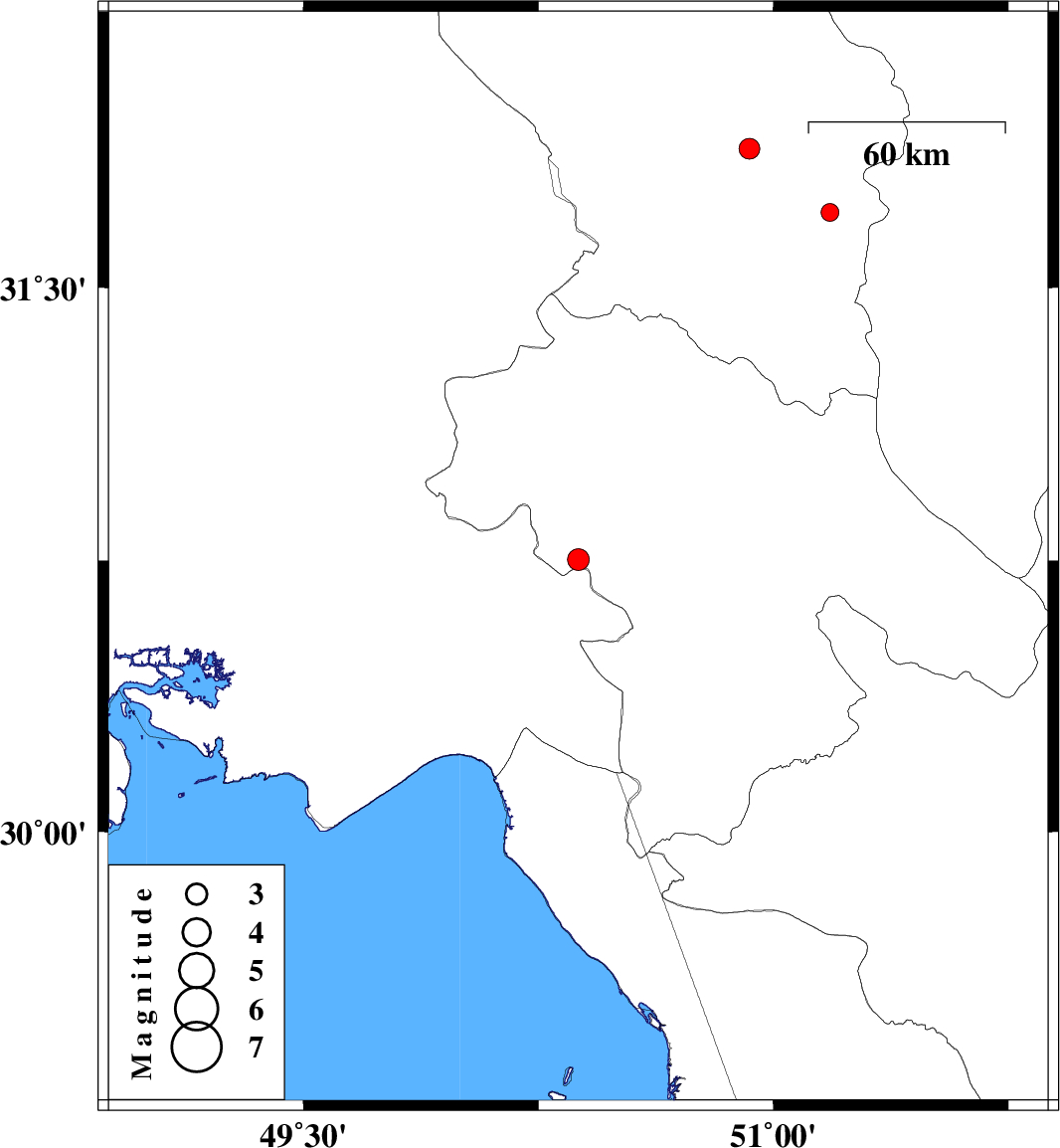 | 2015/09/19 | 02:04:00.3 | 06:34:00.3 | 30.752 | 50.377 | 14 | ML3.1 | Kohkiluieh va boyerahmad Province, 18 km -West of Dehdasht | ||