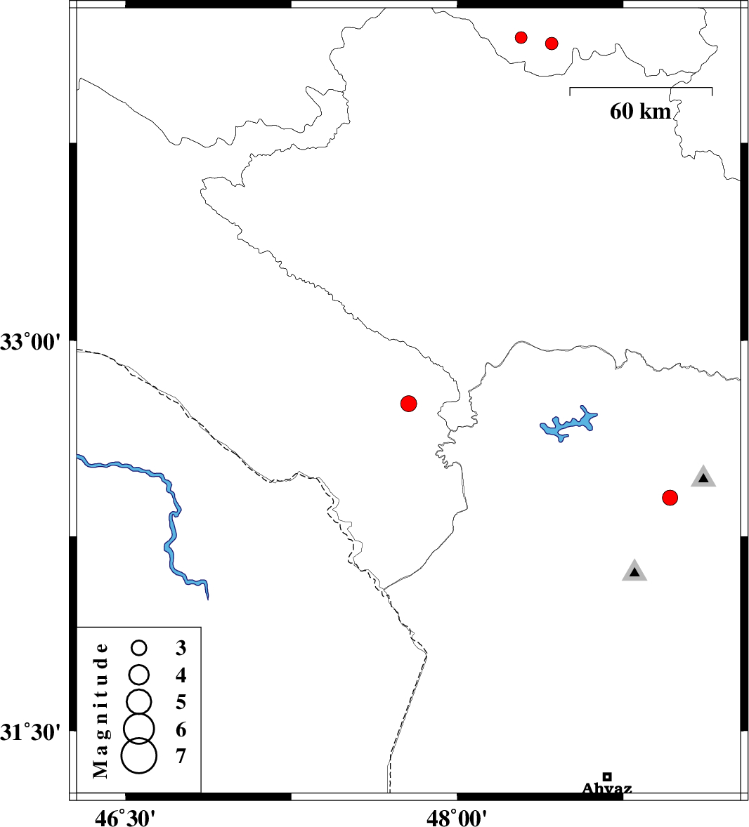 | 2015/09/14 | 23:38:13.8 | 04:08:13.8 | 32.399 | 48.962 | 37 | ML3.1 | Khoozestan Province, 14 km -West of Lali | ||