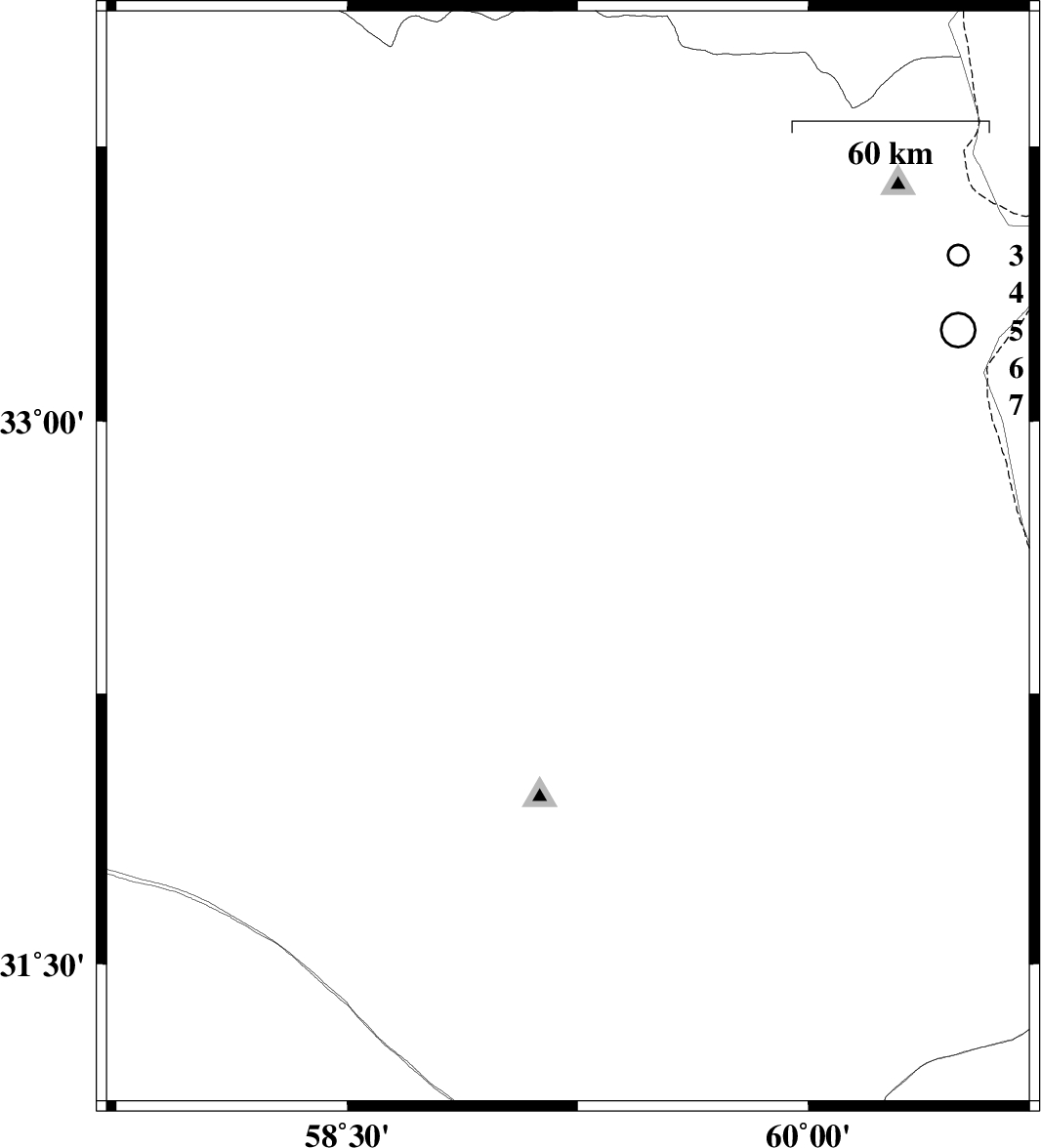 | 2015/09/26 | 17:46:52.0 | 21:16:52.0 | 32.618 | 59.218 | 17 | ML1.9 | Khorasan(south) Province, 31 km South of Birjand |