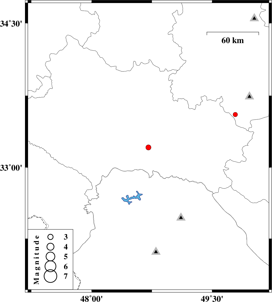 | 2015/09/30 | 03:31:25.7 | 07:01:25.7 | 33.209 | 48.707 | 14 | ML3 | Lorestan Province, 44 km South-East of Khorramabad | ||