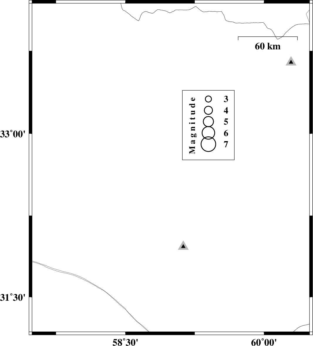 | 2015/09/17 | 06:13:12.4 | 10:43:12.4 | 32.678 | 58.991 | 15 | ML2.1 | Khorasan(south) Province, 33 km South-West of Birjand | ||