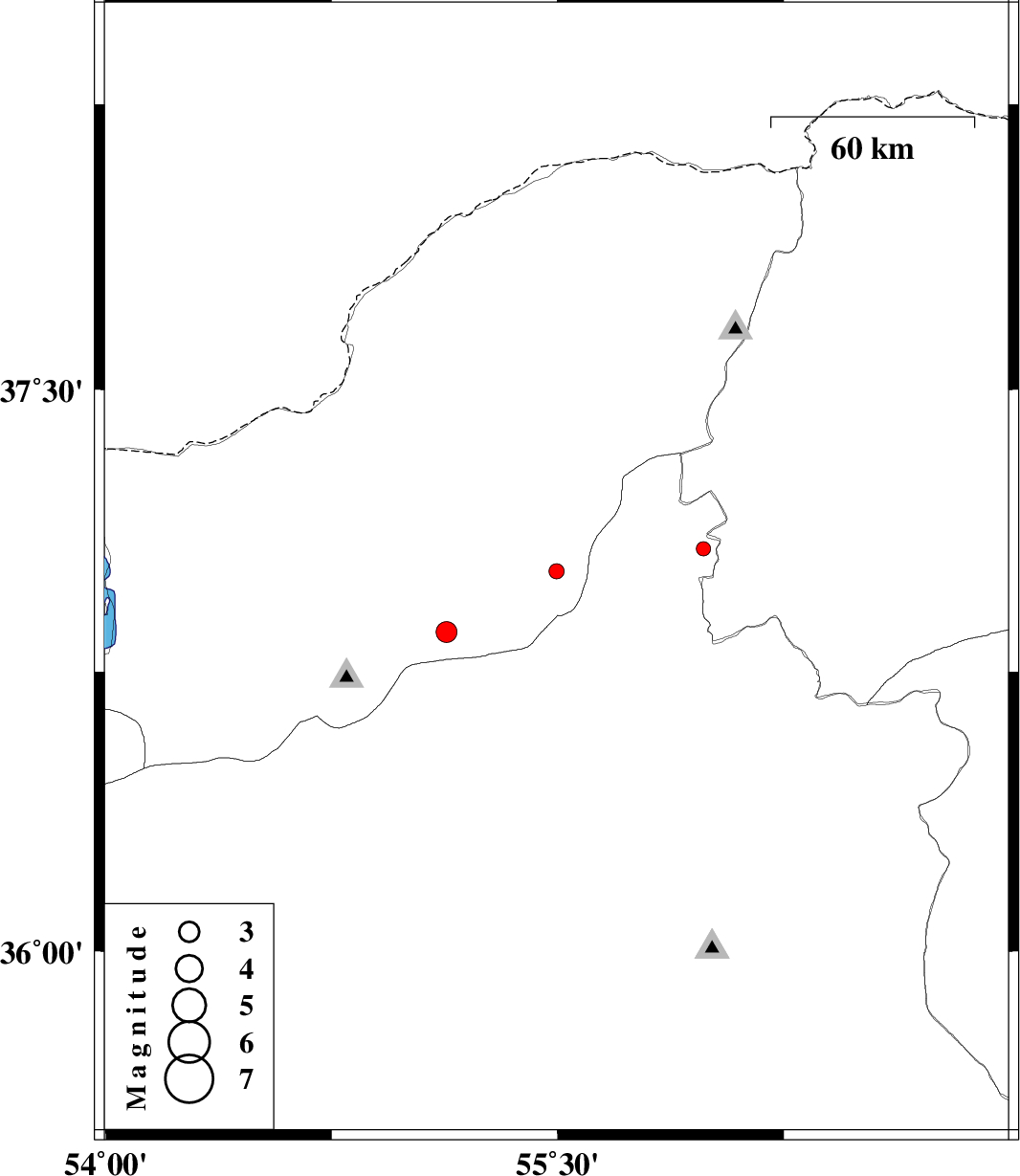 | 2015/09/30 | 15:08:51.9 | 18:38:51.9 | 36.856 | 55.131 | 14 | ML3.1 | Golestan Province, 18 km South of Ramian |