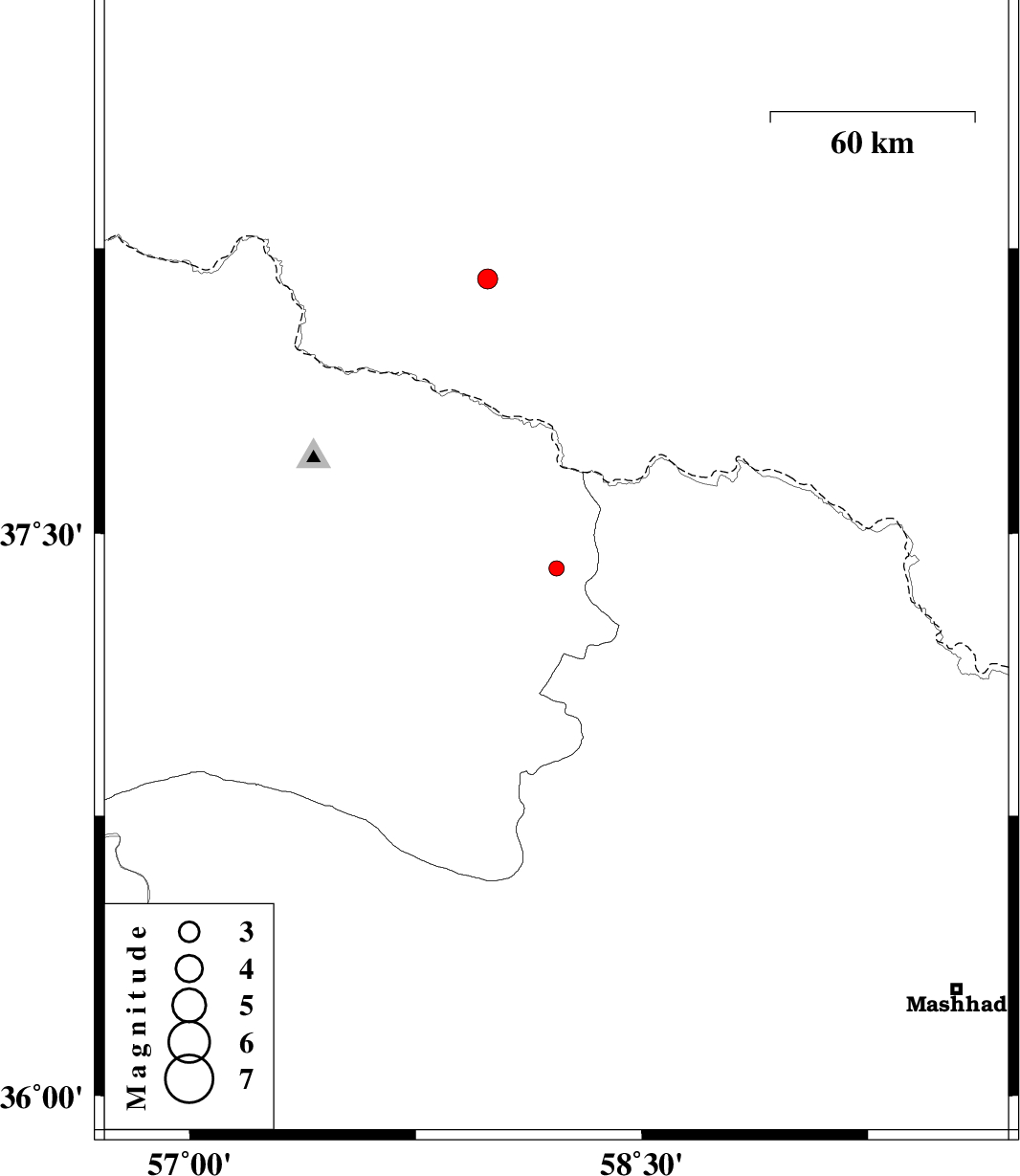 | 2015/09/21 | 05:42:11.9 | 10:12:11.9 | 37.408 | 58.217 | 14 | ML2.2 | Khorasan(center) Province, 26 km -East of Shirvan | ||